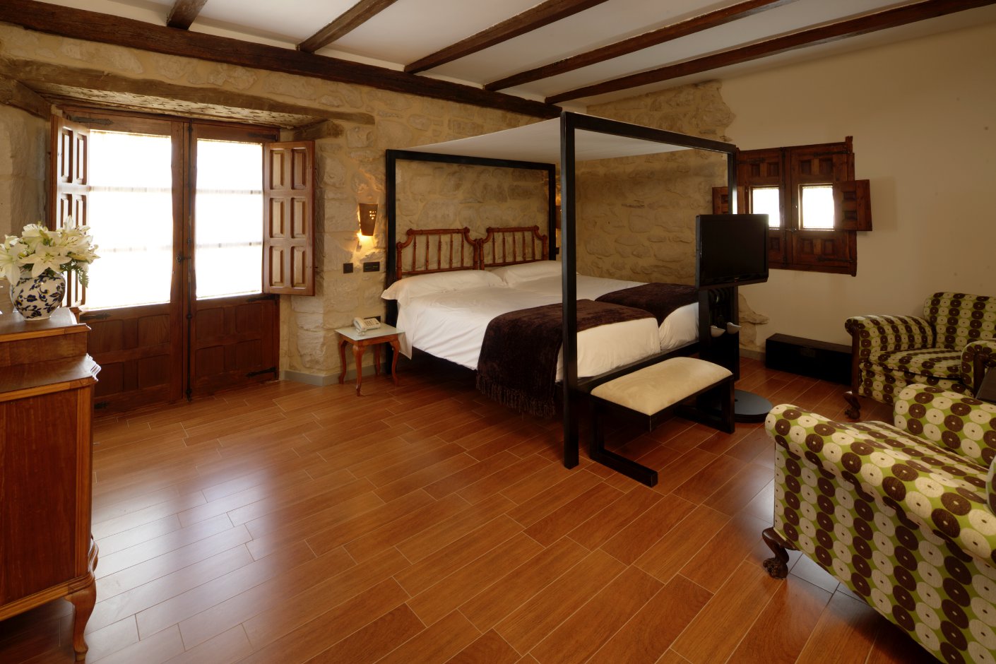 Habitaciones acogedoras, conservadas con los forjados originales y decoradas con cuadros y muebles de la familia para que durante tu estancia te sientas como en casa